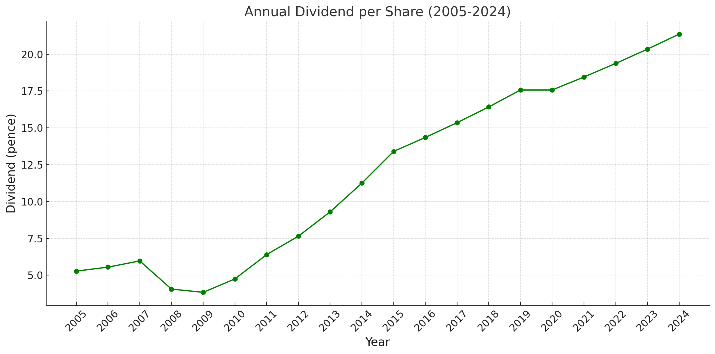 In summary, Legal & General presents itself as a solid long-term investment, combining robust total returns, historical capital appreciation, and a growing dividend policy—albeit one marked by the notable risk of the 2008 cut. While its profile does not match that of an unquestionable “Dividend Aristocrat,” it reveals a resilient enterprise, capable of rebounding and continuing to reward its shareholders.