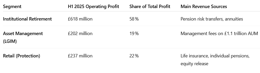 Legal & General Investment Management (LGIM) is one of Europe’s largest asset managers with more than £1.1 trillion in assets under management. Unlike traditional insurance activities, asset management is a capital-light business, generating recurring fees without requiring significant capital commitments. This makes it an important source of stable cash flow for the group.