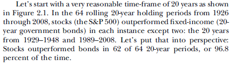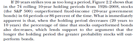 Over 10-year periods, stocks achieve better performance 64 times out of 86: