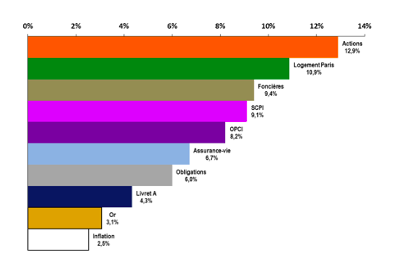 • 2nd Place: For Real Estate, the article is less assertive as it only refers to a residential real estate investment in Paris and clearly states that the timing of the purchase is decisive for the final rate of return. A deeper analysis is certainly necessary, but it emerges from various readings that stocks are the most profitable asset in the long term;
