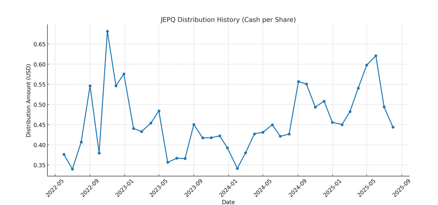 In brief, the fund has consistently generated meaningful income, delivering monthly dividends translating to about an 11.13% yield in 2024, roughly $6.18 per share annually. The income stream remained stable or even grew during this period, backing JEPQ’s claim of combining capital growth and attractive yield. These figures prove JEPQ navigated volatility well while producing solid returns and high income. While not conclusive, the results are convincing enough for now.