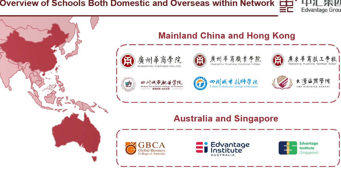 Edvantage Group Holdings (0382.HK) is a leading private higher education and vocational training provider in China’s Greater Bay Area — spanning Guangdong, Hong Kong, and Macau. . Founded in 2003 and publicly listed on the Hong Kong Stock Exchange since 2019, the Group is now moving beyond its home market, accelerating an international strategy that raises both opportunities and execution challenges. As shown below, the company has opened many schools since 2003.