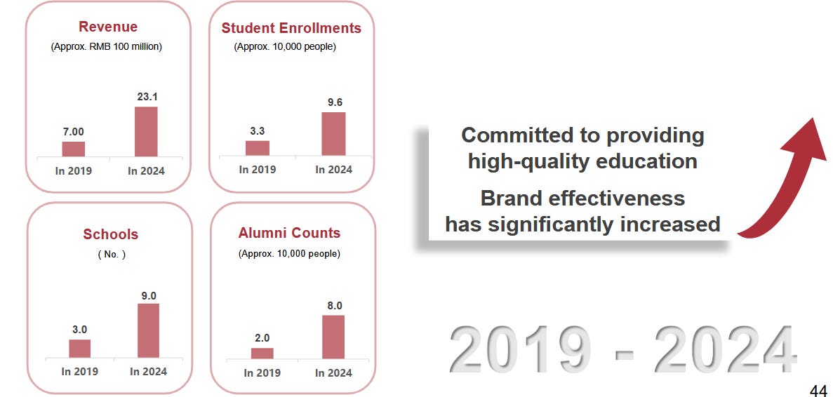 Over the past several years, Edvantage has demonstrated strong and consistent revenue growth. Revenues grew from RMB 573M in FY2016 to RMB 2.31B in FY2024 — an impressive +22% CAGR over eight years, outperforming most peers in China’s private education sector. This shows robust organic growth driven by increased student enrollment, strategic acquisitions, and expansion into international markets. While keeping a balanced 30% dividend payout ratio, Edvantage reinvests heavily in campus expansion, industry partnerships, and global collaborations—working with players like ByteDance, Huawei, and JD.com to deliver job-ready skills. ESG commitments further support its positioning, from rural revitalization programs to sustainable practices.